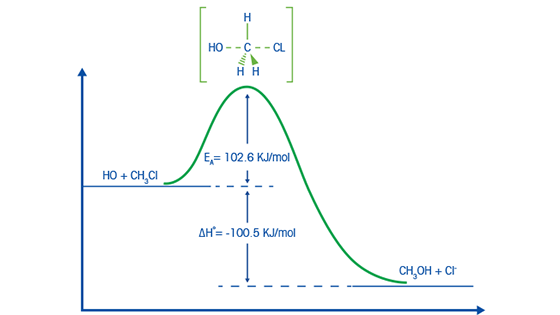温度是反应动力学的另一个主要驱动因素,因为温度升高会增加分子碰撞的次数。此外,开始反应所需的能量为活化能。反应物分子碰撞时形成过渡态需要此能量,速率常数k通过阿伦尼乌斯方程与温度关联。