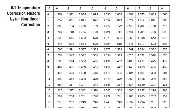 6.1 Facteurs de correction de température f25 pour une correction non linéaire