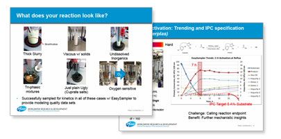 Dr. David Place reviews recent studies at Pfizer focused on the accurate and precise sampling of chemical reactions that are typically difficult to sample, including thick slurries, tri-phasic reactions, and oxygen-sensitive reactions.