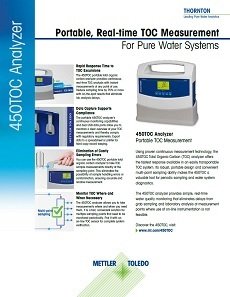 The 450TOC Total Organic Carbon analyzer from METTLER TOLEDO Thornton offers the fastest response to TOC changes available in an easily transportable TOC system. With its robust, portable design the 450TOC is an ideal tool for multi-point TOC measurement for point-of-use monitoring, water system diagnostics, and maintenance verification.